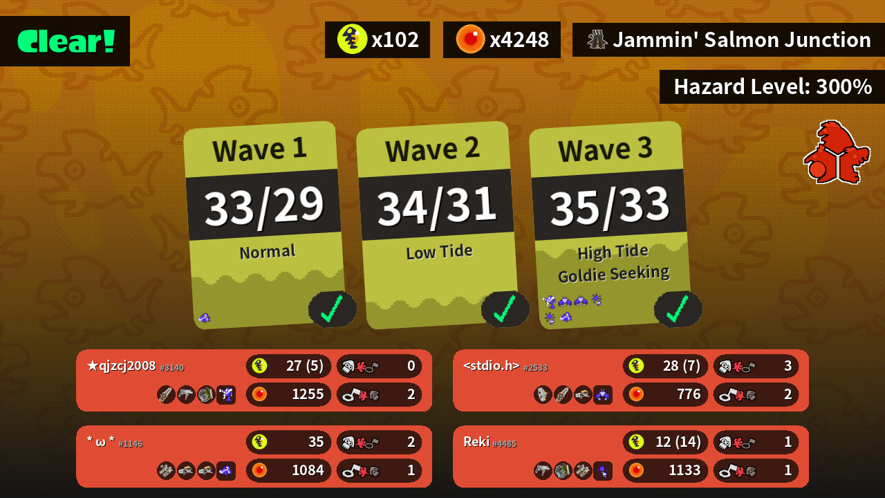 | Weapons | Grizzco Splatana Grizzco Roller Grizzco Slosher | Grizzco Dualies Grizzco Blaster Grizzco Blaster | Grizzco Stringer Grizzco Splatana Grizzco Blaster | Grizzco Roller Grizzco Slosher Grizzco Dualies |