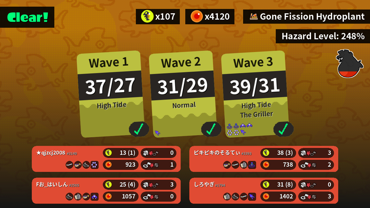| Weapons | Classic Squiffer Mini Splatling Bloblobber | Mini Splatling Classic Squiffer Sloshing Machine | Sloshing Machine Bloblobber Classic Squiffer | Bloblobber Sloshing Machine Mini Splatling |