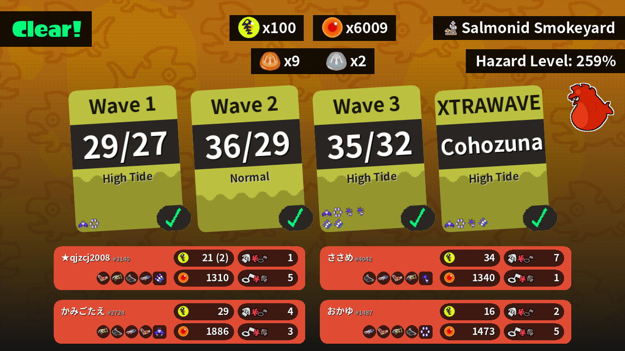 | Weapons | Hydra Splatling Sploosh-o-matic Bloblobber Splattershot Pro | Bloblobber Splattershot Pro Hydra Splatling Sploosh-o-matic | Sploosh-o-matic Bloblobber Splattershot Pro Hydra Splatling | Splattershot Pro Hydra Splatling Sploosh-o-matic Bloblobber |