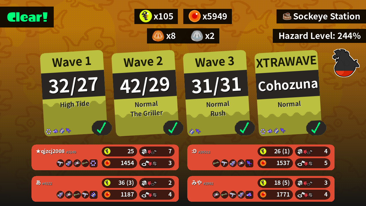 | Weapons | Big Swig Roller Glooga Dualies .52 Gal Bamboozler 14 Mk I | Glooga Dualies .52 Gal Bamboozler 14 Mk I Big Swig Roller | Bamboozler 14 Mk I Big Swig Roller Glooga Dualies .52 Gal | .52 Gal Bamboozler 14 Mk I Big Swig Roller Glooga Dualies |