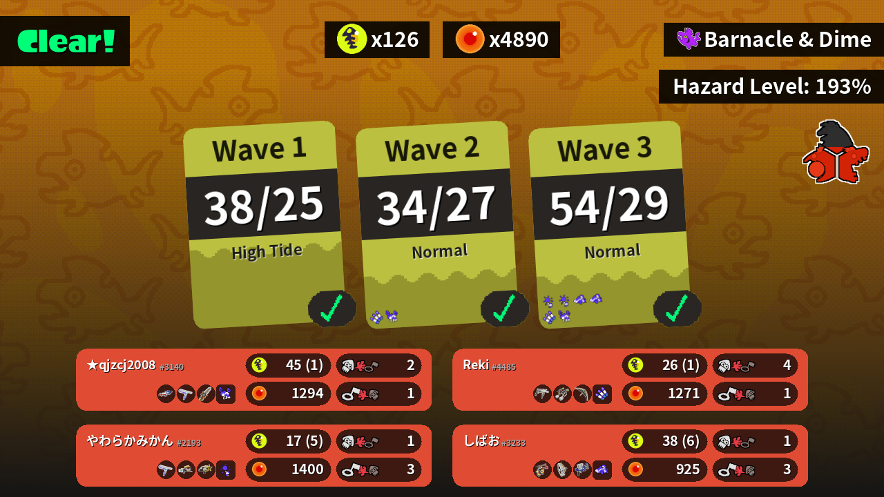 | Weapons | Splattershot Pro Big Swig Roller Grizzco Splatana | Douser Dualies FF Grizzco Stringer Clash Blaster | Grizzco Roller Splat Dualies Tenta Brella | Big Swig Roller Grizzco Blaster Splash-o-matic |