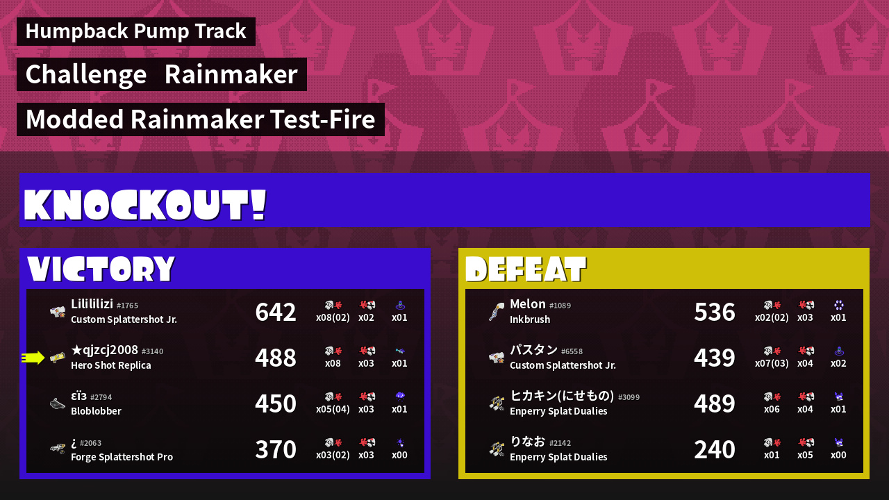 | Medals | #1 Overall Splatter #1 Enemy Splatter First Splat! | ||
