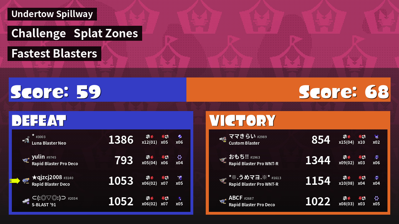 | Medals | #1 Splat Zone Guard #1 Super Jump Spot #1 Damage Taker | ||