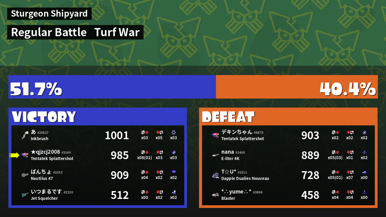 | Medals | #1 Overall Splatter #1 Popular Target #1 Enemy-Base Inker | ||