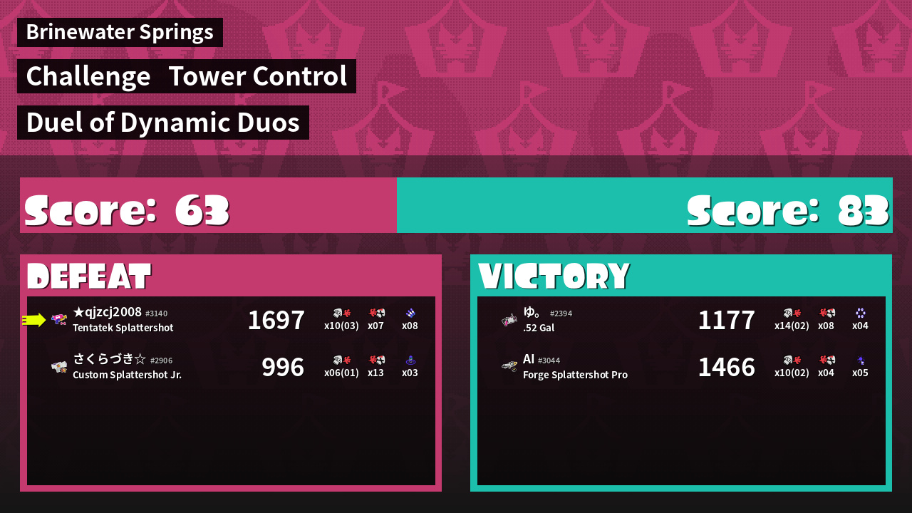 | Medals | #1 Overall Splatter #1 Score Booster Record-Score Setter | ||