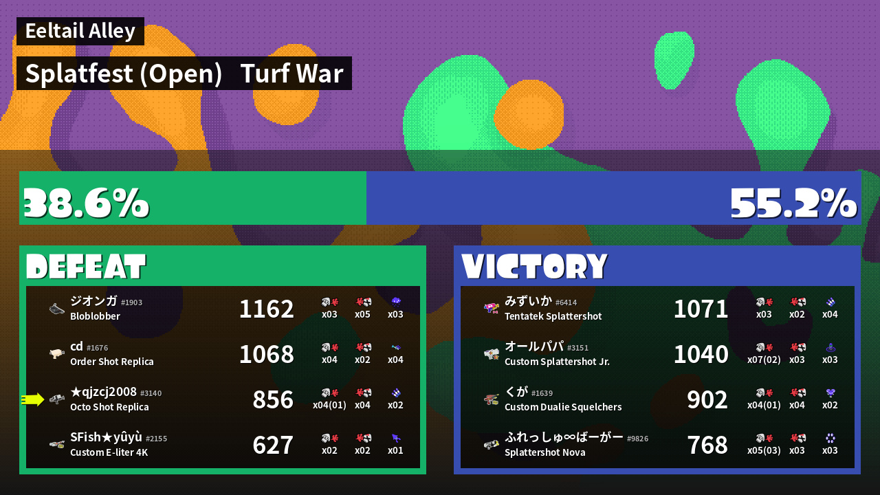 | Medals | #1 Overall Splatter #1 Home-Base Inker #1 Splat Assister | ||