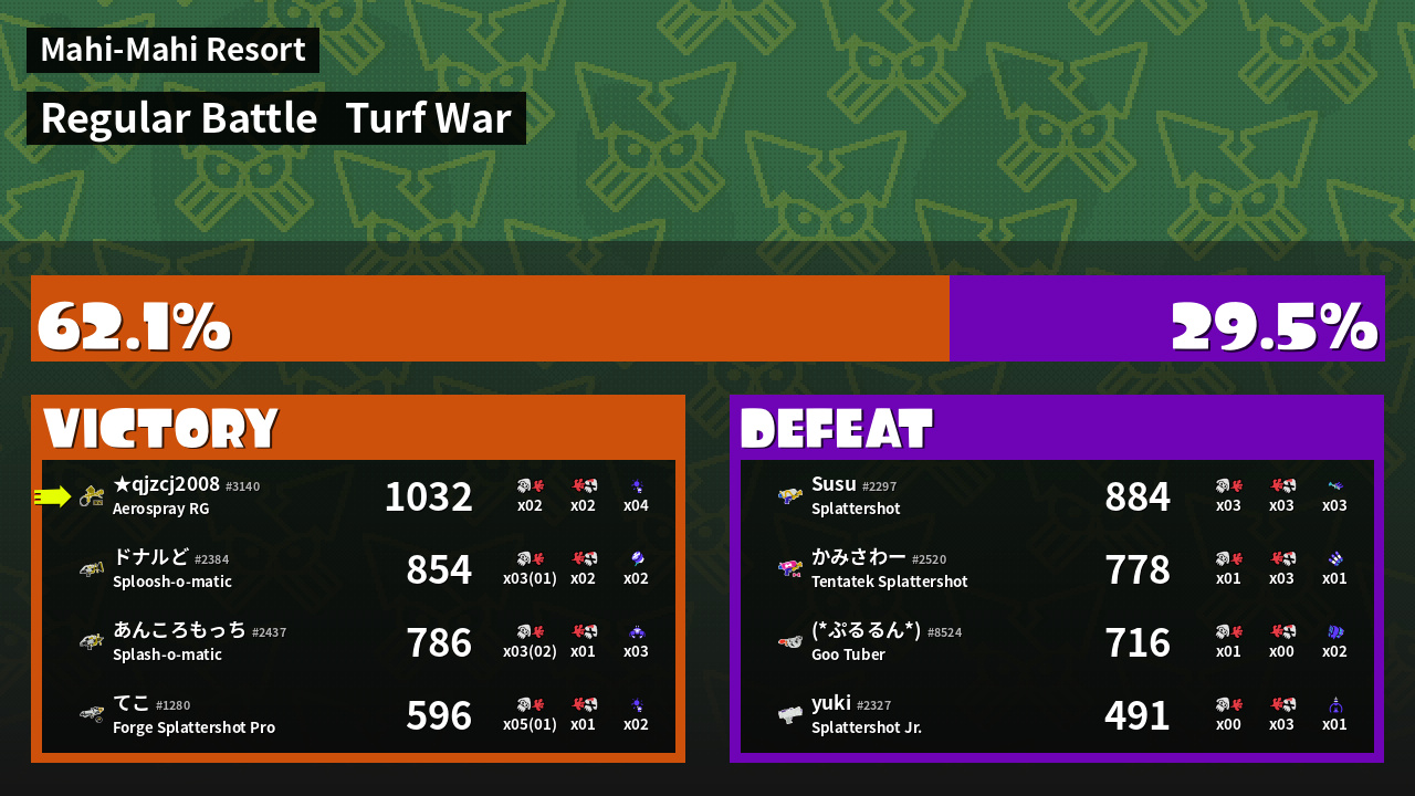 | Mode | Turf War - Regular Battle | ||