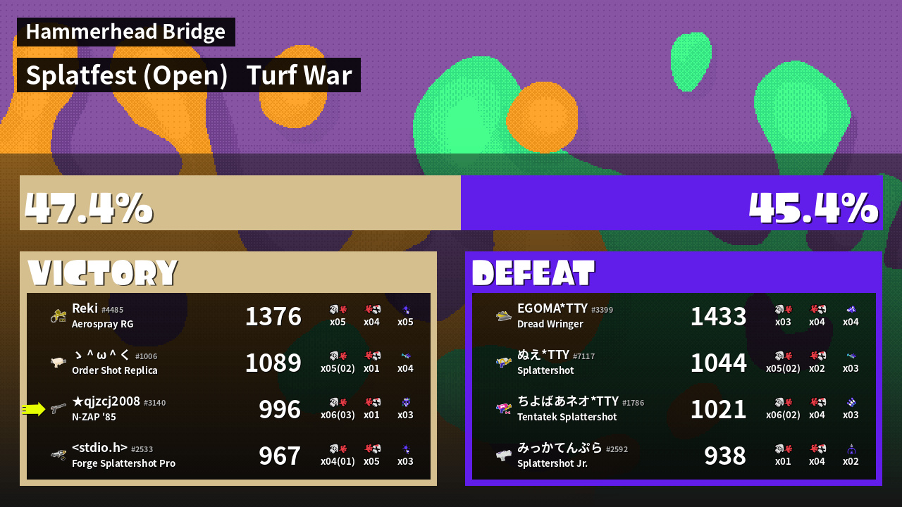 | Medals | #1 Overall Splatter #1 Splat Assister #1 Damage Taker | ||