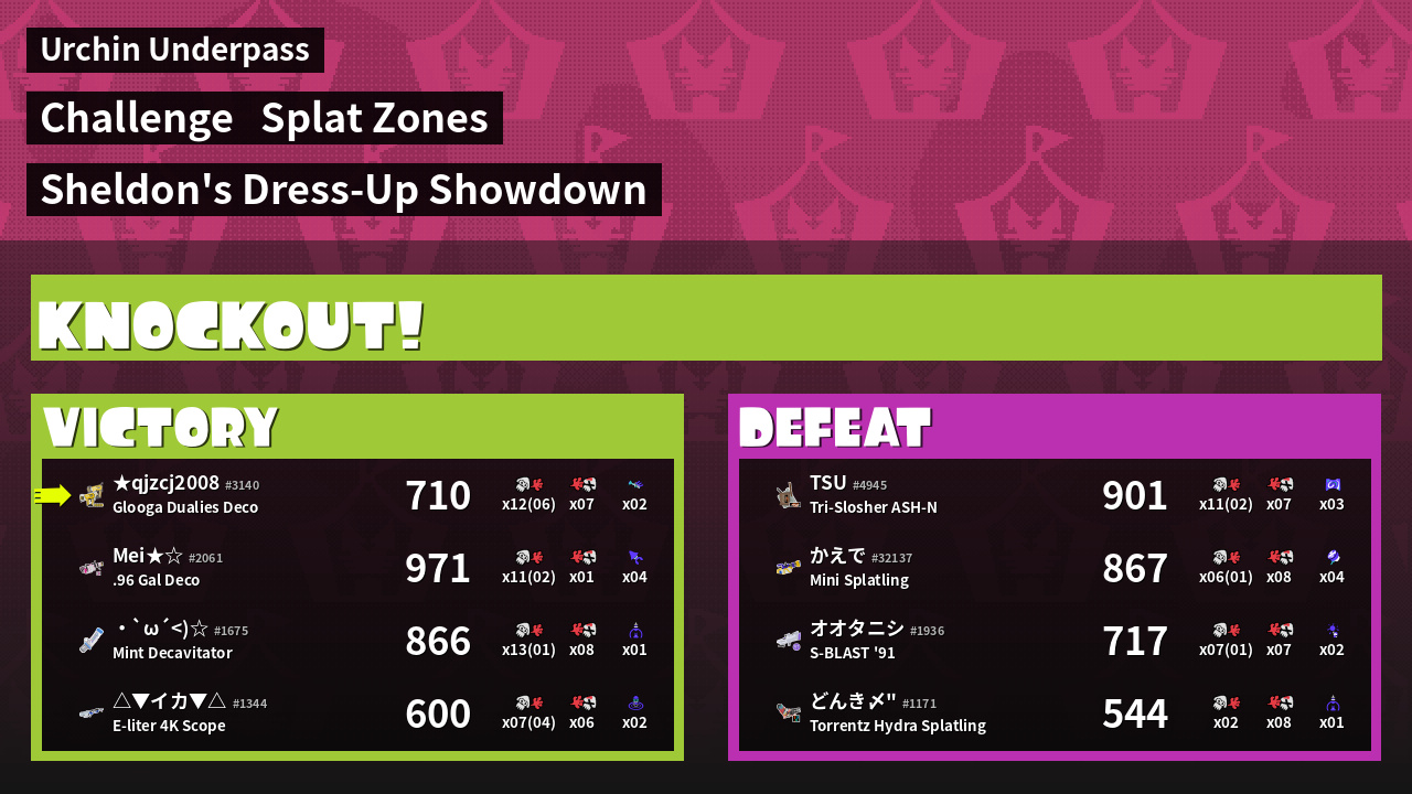 | Medals | #1 Splat Zone Guard #1 Super Jump Spot #1 Splat Assister | ||