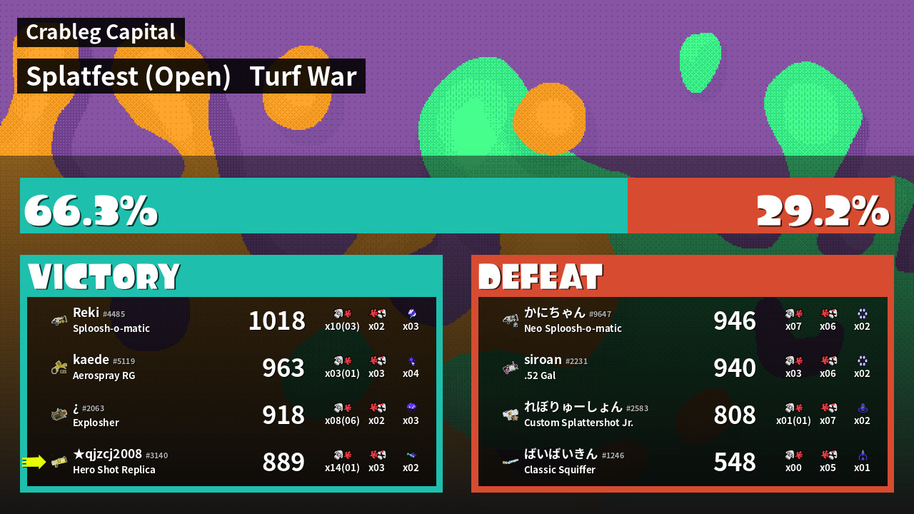 | Medals | #1 Overall Splatter #1 Popular Target #1 Enemy-Base Inker | ||