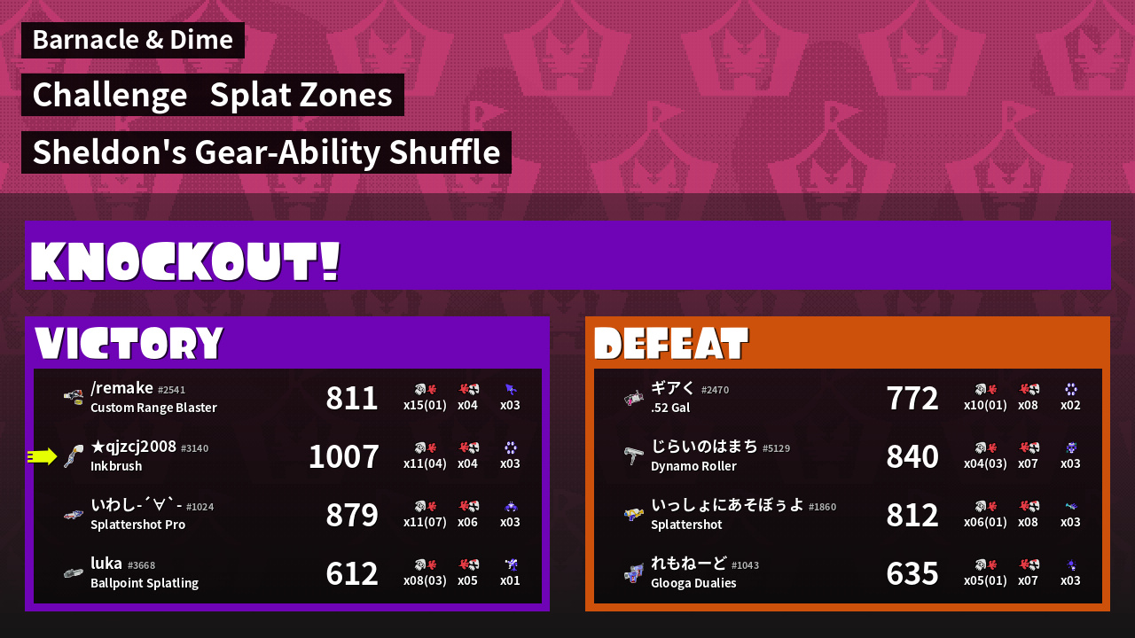 Challenge | Sheldon's Gear-Ability Shuffle Let Sheldon pick your loadout for a battle<br />of random weapons and gear abilities! | ||