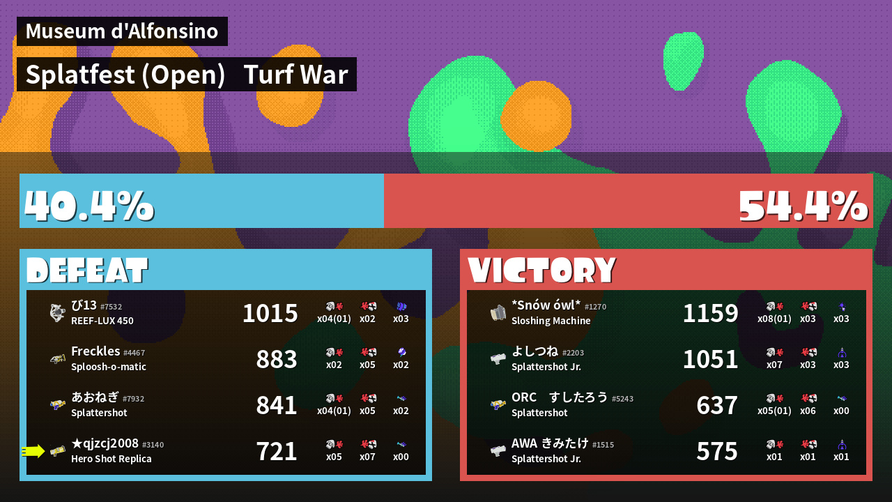 | Medals | #1 Overall Splatter #1 Popular Target #1 Enemy Splatter | ||