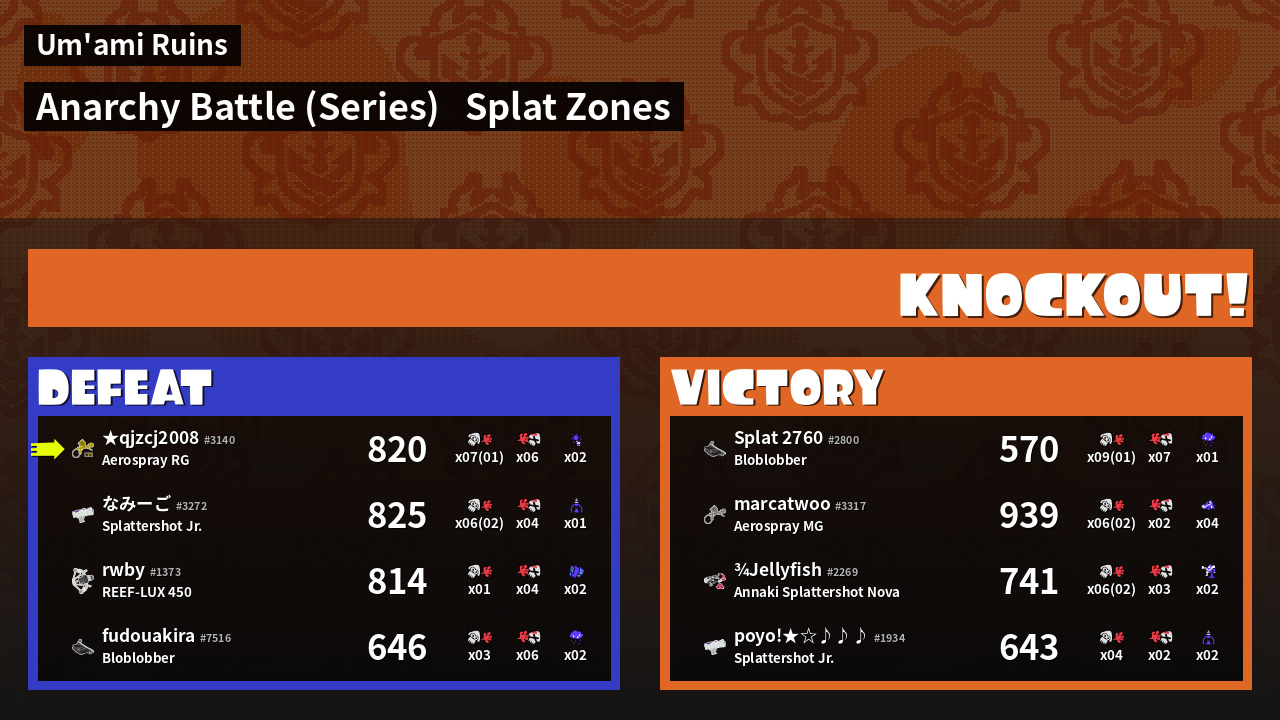 | Mode | Splat Zones - Anarchy Battle (Series) | ||