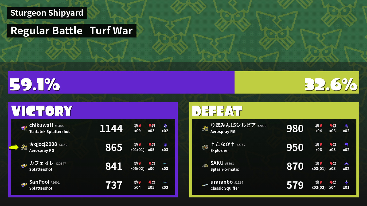 | Mode | Turf War - Regular Battle | ||