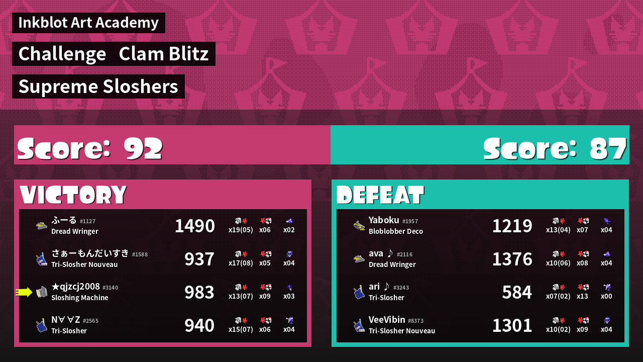 Challenge | Supreme Sloshers Go forth and slosher the opposition! | ||