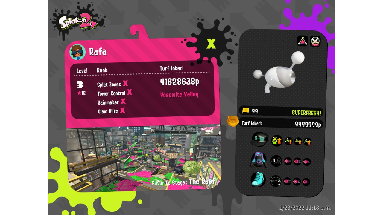| SplatNet Battle # | 69,444 | ||||||||||||||||||||||||||||||||||
