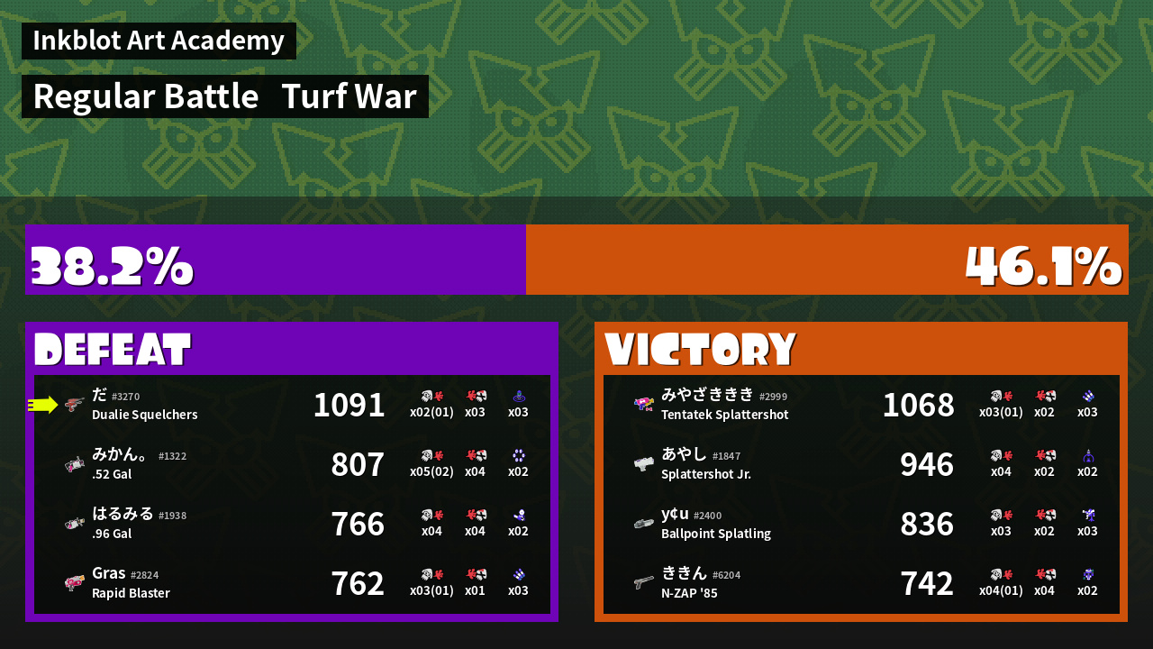 | Medals | #1 Turf Inker #1 Home-Base Inker #1 Enemy-Base Inker | ||