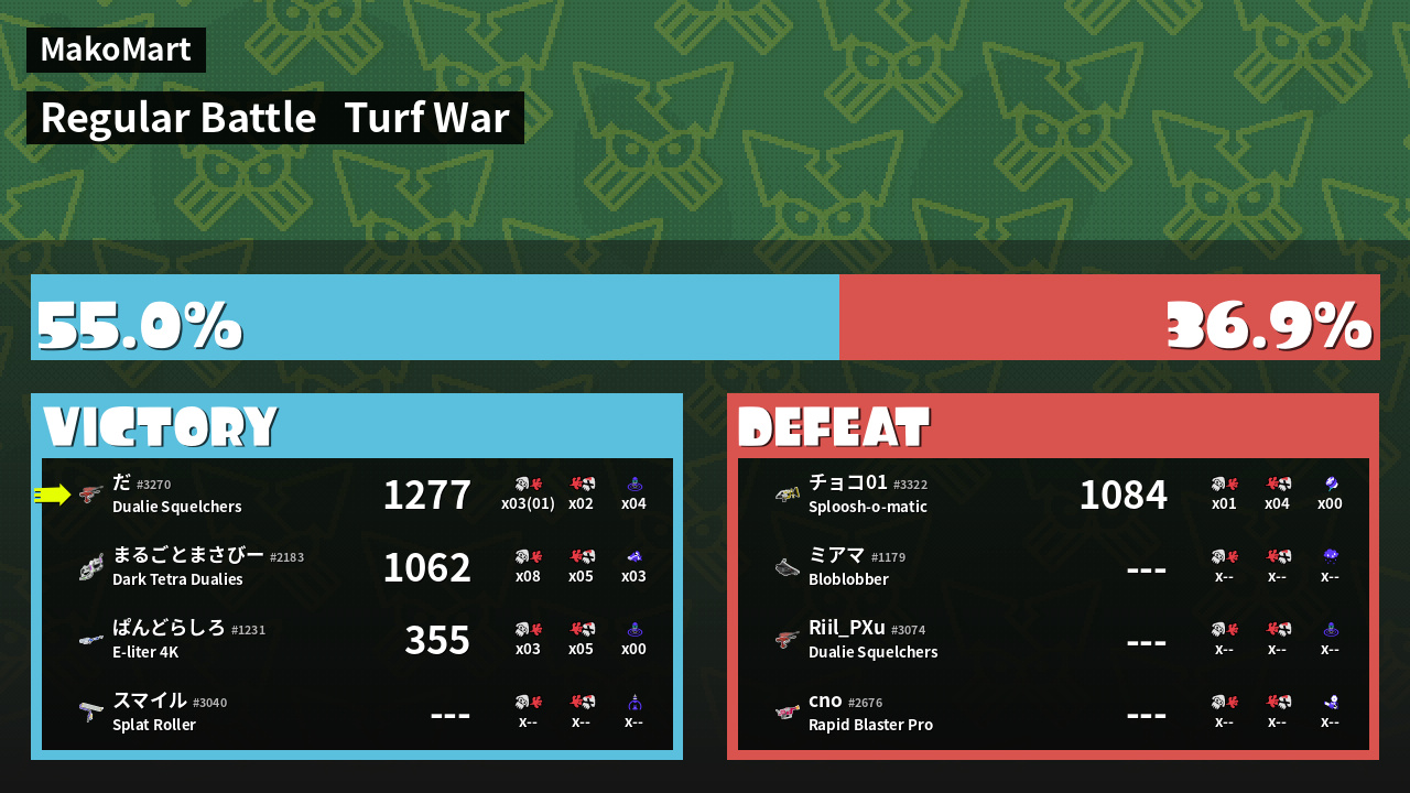 Results of だ's Battle