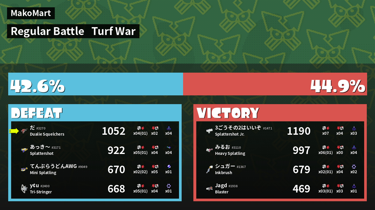 | Mode | Turf War - Regular Battle | ||||