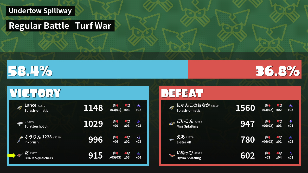| Medals | #1 Super Jump Spot #1 Splat Assister First Splat! | ||