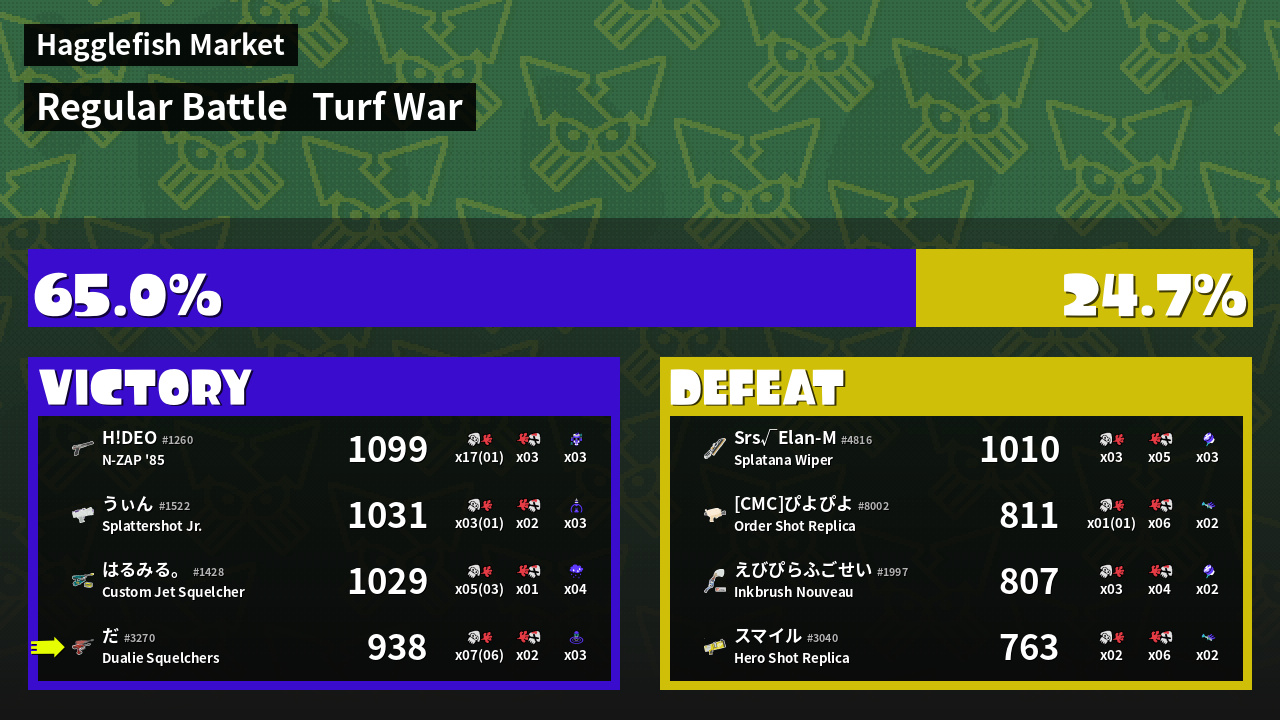 | Medals | #1 Splat Assister First Splat! #1 Wave Breaker User | ||