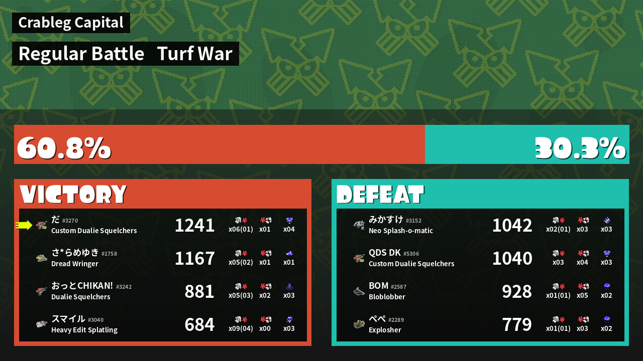 | Medals | #1 Turf Inker #1 Enemy Splatter #1 Ground Traveler | ||