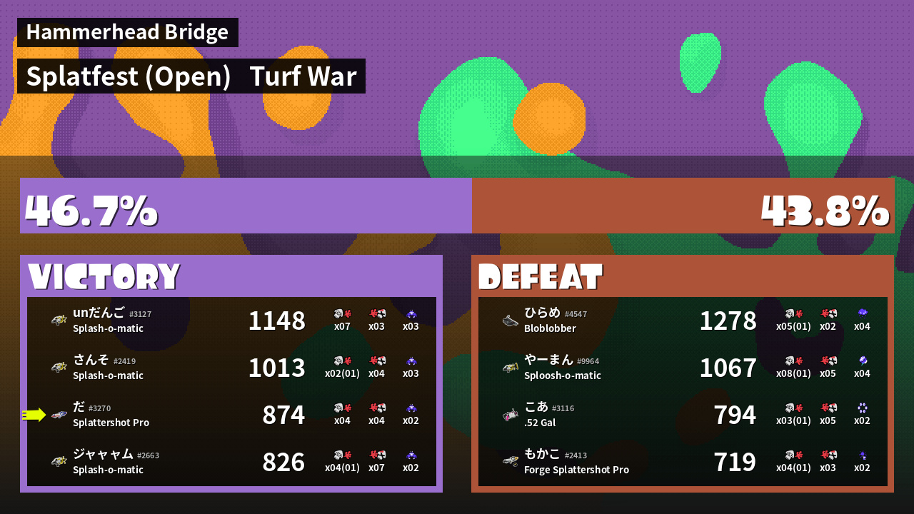 | Medals | First Splat! #2 Overall Splatter #2 Enemy Splatter | ||