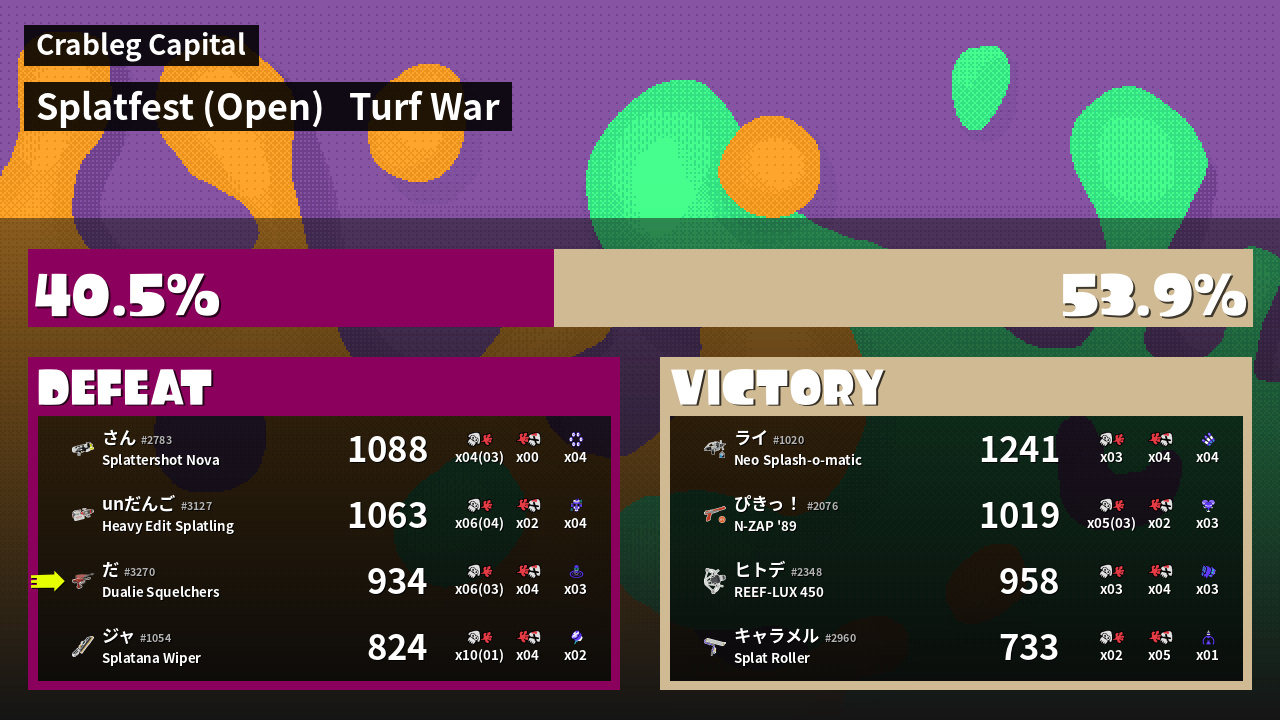 | Medals | #1 Popular Target #1 Super Jump Spot #2 Overall Splatter | ||
