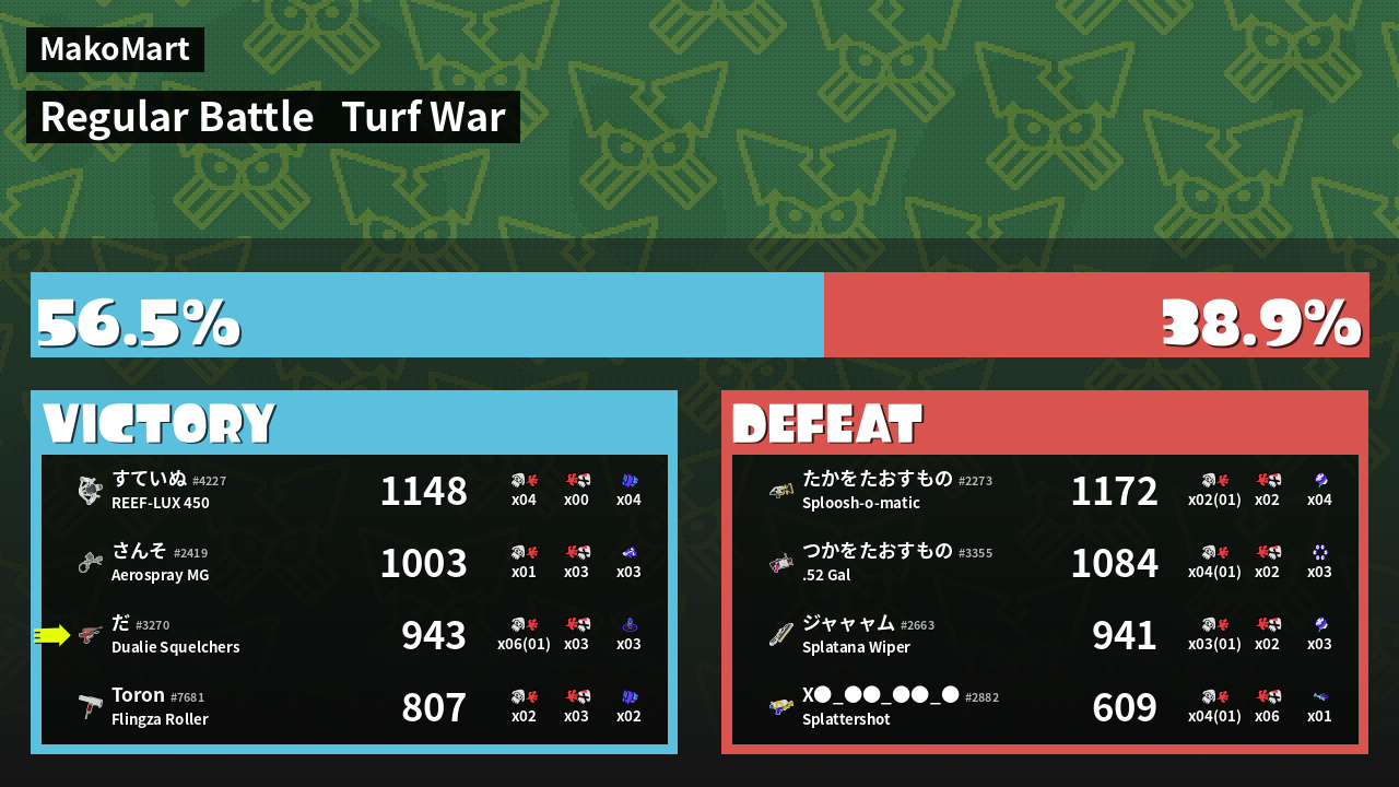 | Medals | #1 Overall Splatter #1 Popular Target #1 Enemy-Base Inker | ||