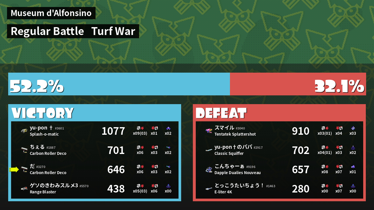 | Mode | Turf War - Regular Battle | ||