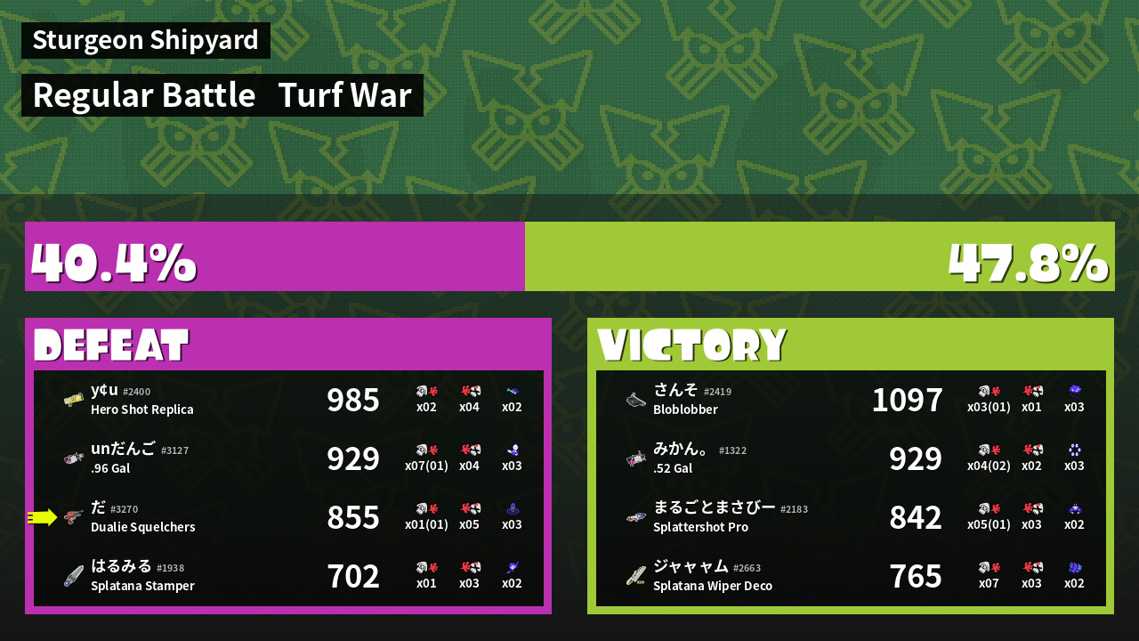 | Mode | Turf War - Regular Battle | ||