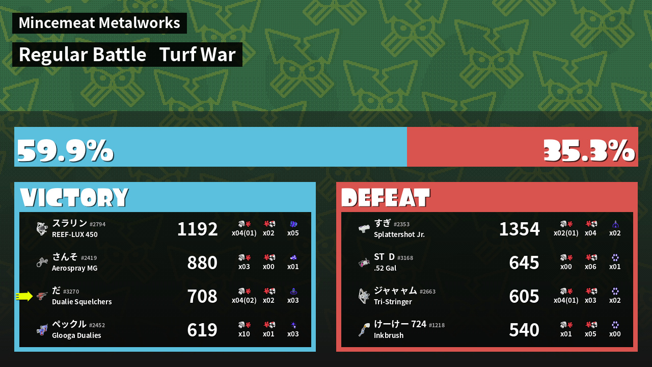 | Medals | #1 Splat Assister #1 Ink Consumer #1 Wave Breaker User | ||
