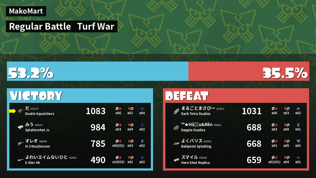 Results of だ's Battle