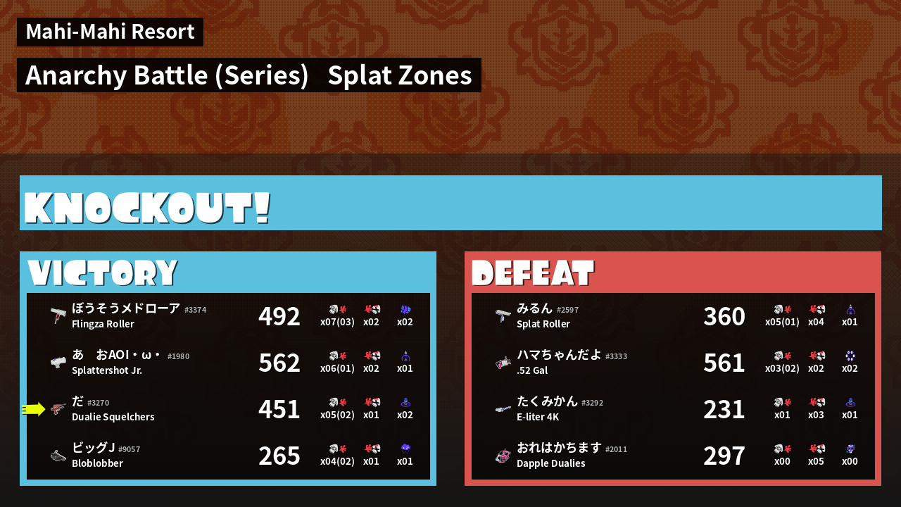 | Medals | #1 Ink Consumer #1 Wave Breaker User #2 Splat Zone Guard | ||