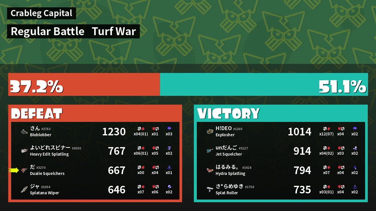 | Mode | Turf War - Regular Battle | ||
