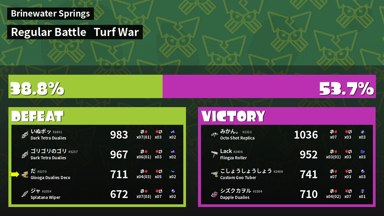 | Mode | Turf War - Regular Battle | ||