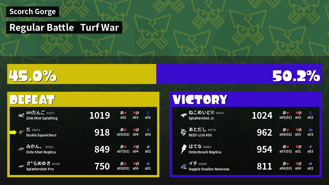 | Medals | #1 Home-Base Inker #1 Splat Assister #1 Ink Consumer | ||