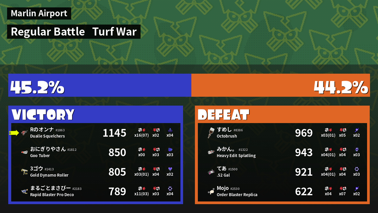 Results of だ's Battle