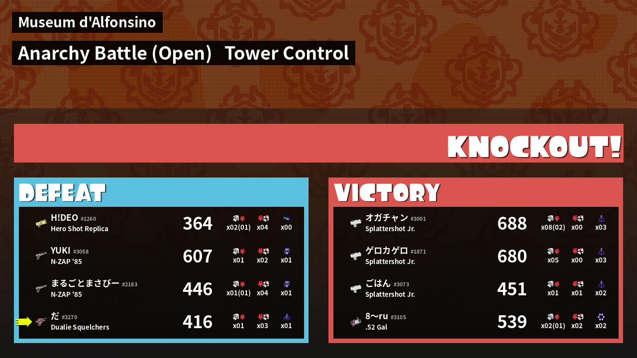 | Mode | Tower Control - Anarchy Battle (Open) | ||