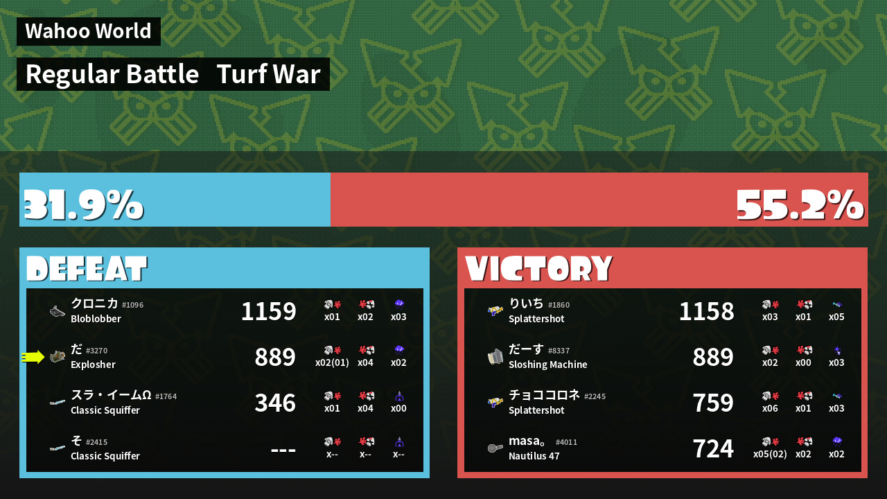 | Mode | Turf War - Regular Battle | ||