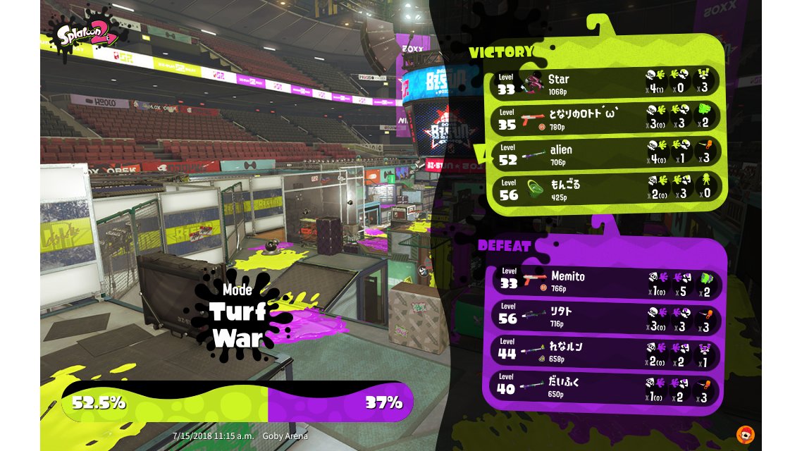 | Mode | Turf War - Regular Battle | |||||||||||||||||||||||||||||||||||||