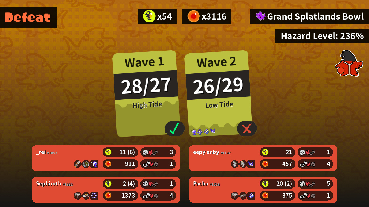 | Weapons | Grizzco Splatana Grizzco Slosher | Grizzco Stringer Grizzco Stringer | Grizzco Roller Grizzco Charger | Grizzco Roller Grizzco Blaster |
