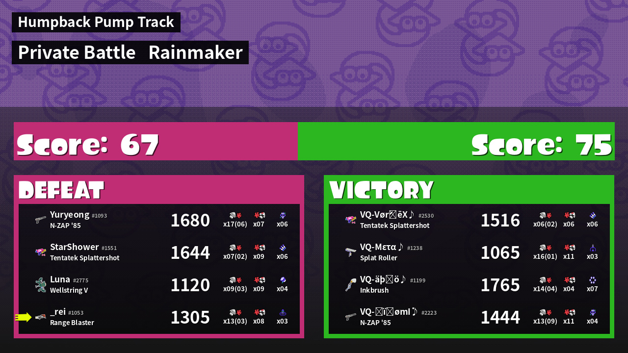 | Medals | #1 Wave Breaker User #2 Overall Splatter #2 Enemy Splatter | ||