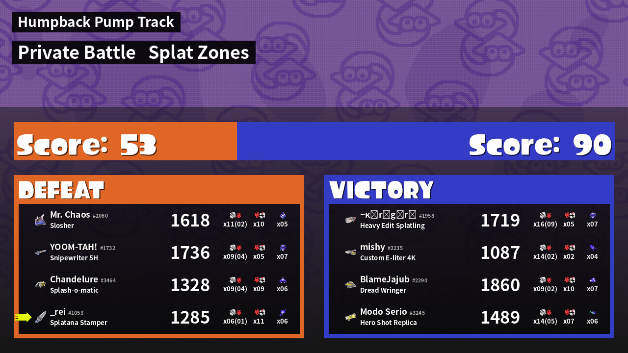 | Medals | #1 Splat Zone Hero #1 Zipcaster User #2 Enemy Splatter | ||