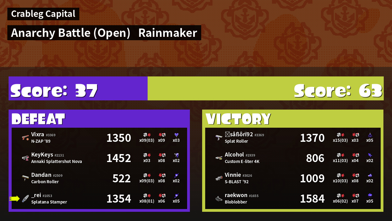 | Mode | Rainmaker - Anarchy Battle (Open) | ||
