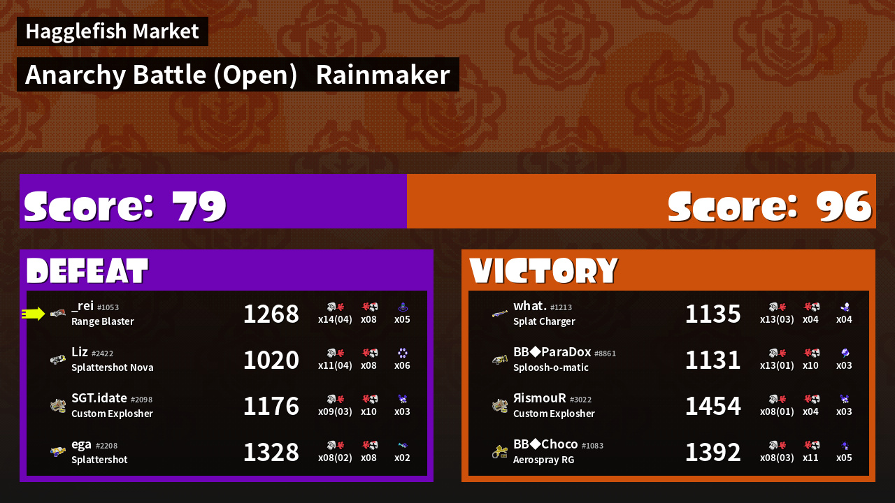 | Mode | Rainmaker - Anarchy Battle (Open) | ||