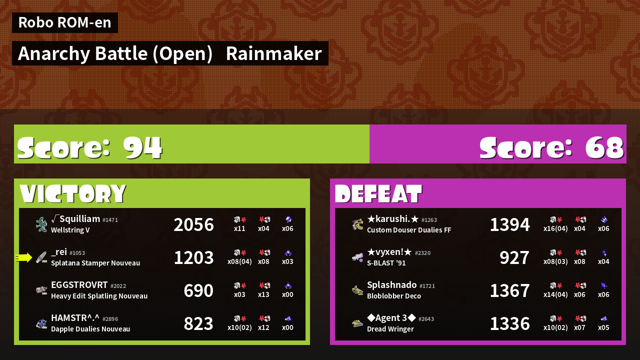 | Mode | Rainmaker - Anarchy Battle (Open) | ||