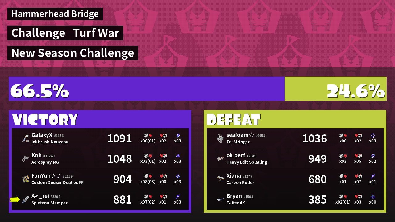 | Mode | Turf War - Challenge | ||