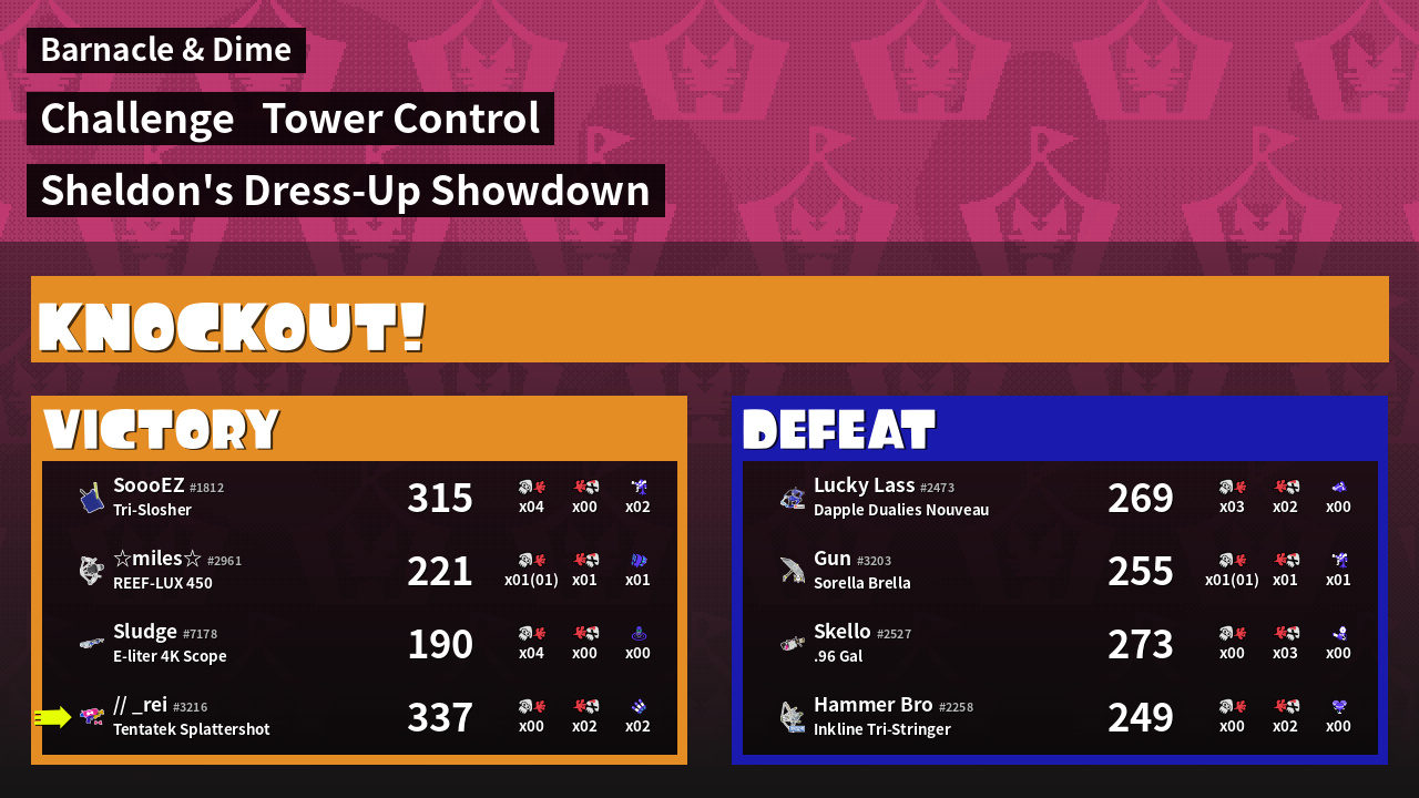 | Weapon | Tentatek Splattershot ( Splat Bomb / Triple Inkstrike) | ||