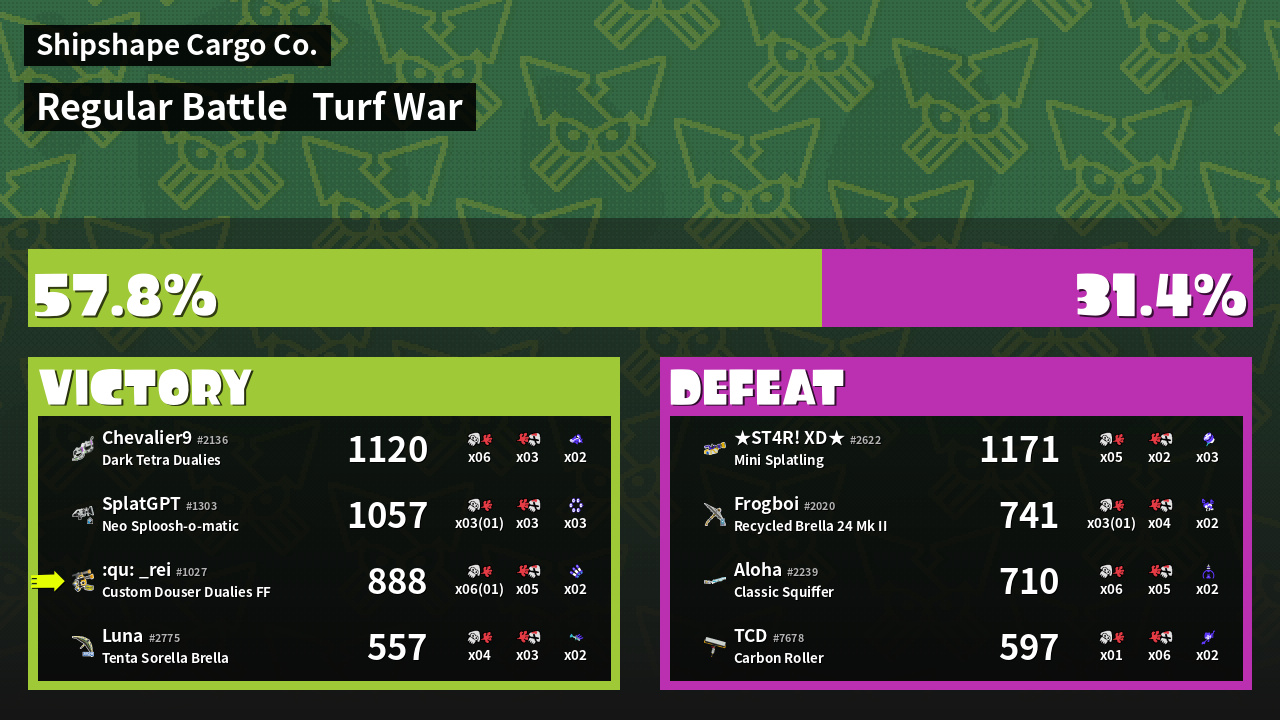 | Mode | Turf War - Regular Battle | ||
